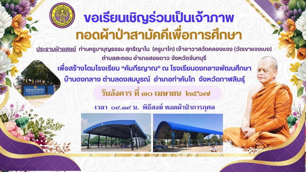 งานประชาสัมพันธ์โรงเรียน โรงเรียนดงกลางพัฒนศึกษา สพม.กาฬสินธุ์ Admin 10 เมษายน 2024 ขอเรียนเชิญร่วมเป็นเจ้าภาพทอดผ้าป่าสามัคคีเพื่อการศึกษา Continue Reading Previous: พิธีเทหล่อองค์พระพุทธรูป องค์ที่3 (พระสมณเจ้าองค์มุณีคูณ) ณ วัดป่าคำจันทร์เพ็ญNext: รับสมัครคัดเลือกบุคคลเพื่อจ้างเป็นลูกจ้างชั่วคราวปฏิบัติงานธุรการโรงเรียน เงินเดือน 9,000 บาท ใส่ความเห็น ยกเลิกการตอบอีเมลของคุณจะไม่แสดงให้คนอื่นเห็น ช่องข้อมูลจำเป็นถูกทำเครื่องหมาย *ความเห็น * ชื่อ * อีเมล * เว็บไซต์ บันทึกชื่อ, อีเมล และชื่อเว็บไซต์ของฉันบนเบราว์เซอร์นี้ สำหรับการแสดงความเห็นครั้งถัดไป Related News งานประชาสัมพันธ์โรงเรียน ดร.วิภา สายรัตน์ ผู้อำนวยการสำนักงานเขตพื้นที่การศึกษามัธยมศึกษากาฬสินธุ์ พร้อมคณะ ในโอกาสลงพื้นที่ตรวจเยี่ยมและติดตามการดำเนินงานของสถานศึกษา Admin 13 ธันวาคม 2025 งานประชาสัมพันธ์โรงเรียน กิจกรรมเข้าค่ายลูกเสือ-เนตรนารี ลูกเสือสามัญรุ่นใหญ่ ลูกเสือวิสามัญ Admin 13 ธันวาคม 2025 งานประชาสัมพันธ์โรงเรียน นิเทศ ติดตาม ให้คำปรึกษา ในการนิเทศบูรณาการตามนโยบาย “เรียนดี มีคุณธรรม ประจำภาคเรียนที่ 2/2568 Admin 13 ธันวาคม 2025
