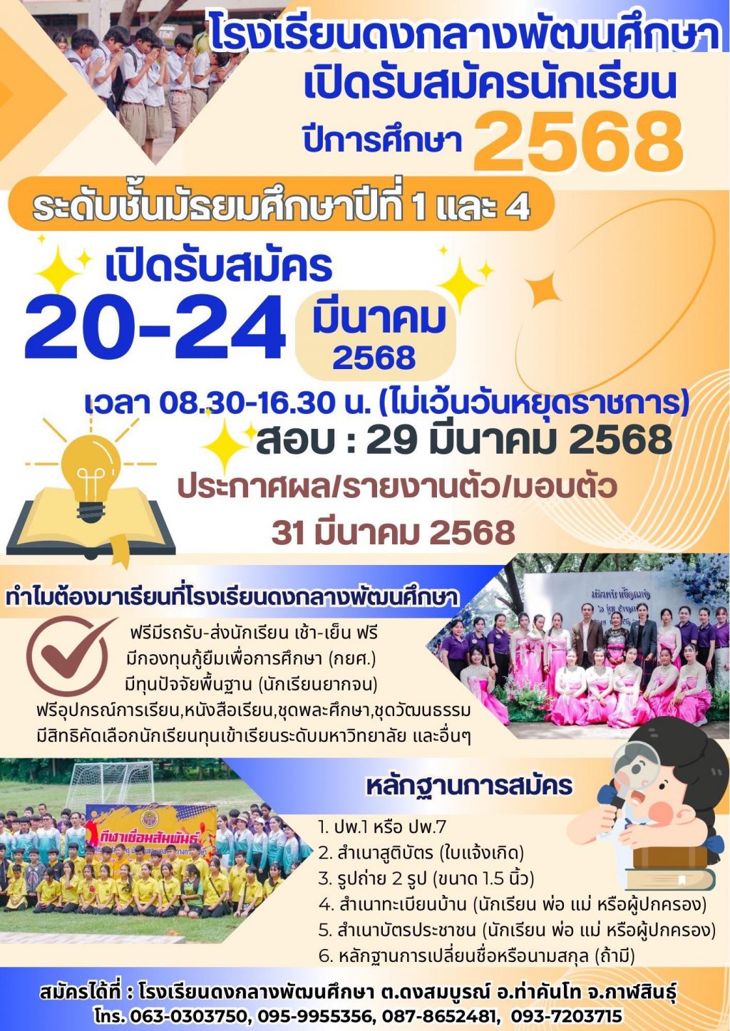 งานประชาสัมพันธ์โรงเรียน การเปิดรับสมัครนักเรียน ระดับชั้นมัธยมศึกษาปีที่ 1 และ 4 Admin 2 มีนาคม 2025 Continue Reading Previous: เรื่อง “วัยรุ่นดงกลางยุคใหม่…ใส่ใจจิตอาสา”Next: พิธีปัจฉิมนิเทศ ใส่ความเห็น ยกเลิกการตอบอีเมลของคุณจะไม่แสดงให้คนอื่นเห็น ช่องข้อมูลจำเป็นถูกทำเครื่องหมาย *ความเห็น * ชื่อ * อีเมล * เว็บไซต์ บันทึกชื่อ, อีเมล และชื่อเว็บไซต์ของฉันบนเบราว์เซอร์นี้ สำหรับการแสดงความเห็นครั้งถัดไป Related News งานประชาสัมพันธ์โรงเรียน ดร.วิภา สายรัตน์ ผู้อำนวยการสำนักงานเขตพื้นที่การศึกษามัธยมศึกษากาฬสินธุ์ พร้อมคณะ ในโอกาสลงพื้นที่ตรวจเยี่ยมและติดตามการดำเนินงานของสถานศึกษา Admin 13 ธันวาคม 2025 งานประชาสัมพันธ์โรงเรียน กิจกรรมเข้าค่ายลูกเสือ-เนตรนารี ลูกเสือสามัญรุ่นใหญ่ ลูกเสือวิสามัญ Admin 13 ธันวาคม 2025 งานประชาสัมพันธ์โรงเรียน นิเทศ ติดตาม ให้คำปรึกษา ในการนิเทศบูรณาการตามนโยบาย “เรียนดี มีคุณธรรม ประจำภาคเรียนที่ 2/2568 Admin 13 ธันวาคม 2025